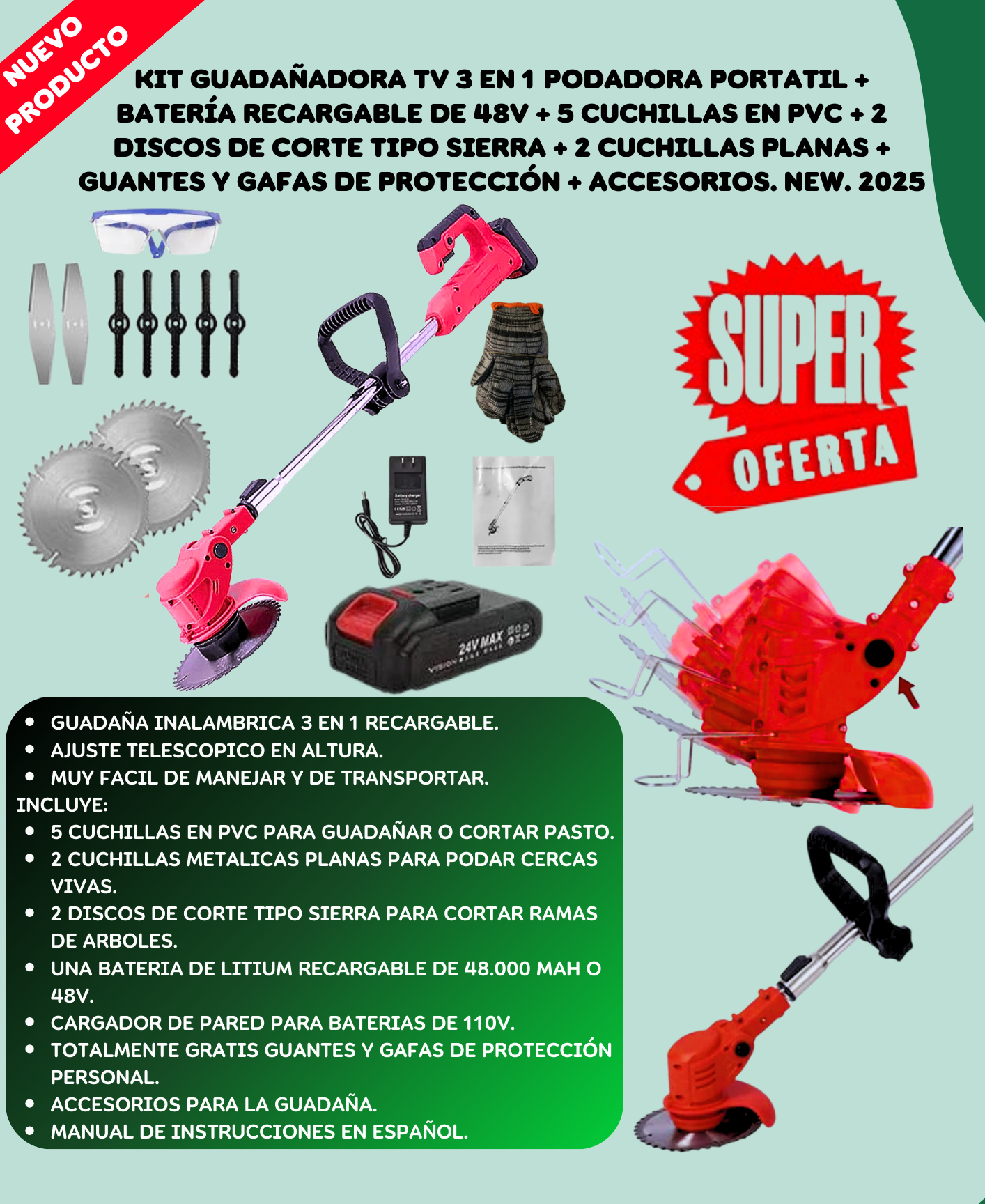 Con la Guadañadora Recargable, transforma el caos en un jardín impecable en minutos. Rápido, fácil y sin esfuerzo.